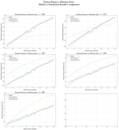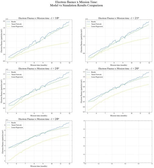 One can notice the influence of these new parameters in Figure 13, as the electron and proton fluences are clearly affected by the inclinations. Through the statistical model, it was also possible to verify the importance of this parameter’s inclusion, since Table 3 and Table 6 show that it had the lowest p-value, i.e., it was the most significant for the theoretical computation of the parameters of interest.