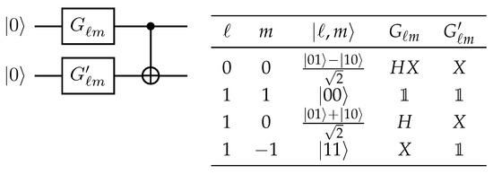where , , and are eigenfunctions of the total spin operators with eigenvalues , , and , respectively, and is a Clebsch–Gordan coefficient. Here, our goal is to map onto a wave function of qubits. To this end, let us consider the case , so that Equation (3) takes the form