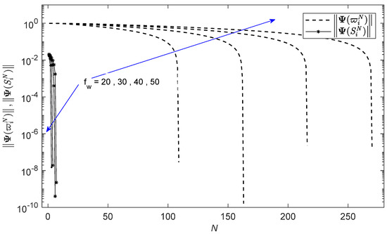 Figure 3 shows the residual error function versus the number of iterations for ASM () and IASM () at ,,, ,. As shown in Figure 3, as the number of iterations increases, the residual error decreases and satisfies our specified accuracy with at for ASM and at for IASM.