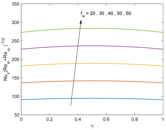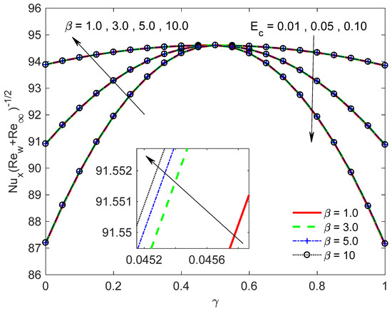 It is possible to compare the outputs obtained by this numerical scheme with the previously cited research of EL-Kabeir et al. [34]. Table 5 displays that excellent agreement between the outputs exists. This lends confidence to the computational outputs to be performed subsequently. Computations were reported for several values of velocity ratio γ at Pr = 0.7.