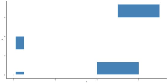 Note that the integrals stated in the expressions defined in (15) and (18), as well as the solution of the equation established in (16), are not simple to obtain explicit closed forms. Moreover, in this paper, we can specify the prior PDF without supposing independence between , and b, via the Jeffreys prior. Note that the Jeffreys prior does not work well for models of multidimensional parameters []. Nonetheless, we use it in the next section to find the Bayesian estimates in a particular case for the sake of comparison.