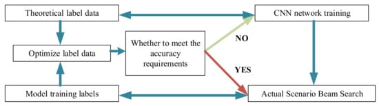 In this paper, an iterative label optimization method is developed. The CNN-based beam searching method is a kind of supervised DL approach. It requires prior information to produce labeled data for neural network training, which can help it to recognize and predict the unknown IOV communication scenes. Therefore, the correctness of labeled data is the key point which can affect the accuracy of the beam search methods []. The representativeness and the pervasiveness are considered as the judgment criteria of the labeled data correctness. According to these two criteria in the labeling process, we discuss whether the vehicle situation in an actual scenario can be reflected by the optimal BPI obtained through the training operation, and whether the generalized ability of the network model can be well revealed after the DL operation.