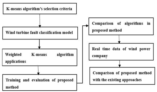 The remainder of the paper is structured as follows: Section 2 is focused on the dynamic weight K-means clustering method, its principles, weighting parameters, and their calculation, and the constraint approximation of algorithm. Then, we provide the wind turbine fault classification model in Section 3. Section 4 presents the application of the weighted K-means algorithm in the wind turbine fault data. In Section 5, we analyze the results and discuss them in the context of fault classification. Section 6 concludes the proposed research and its applications.