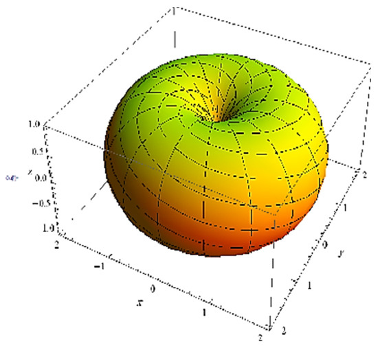 If we consider , then we obtain a member of the sweeping surface family in the special orthogonal group (3), as shown in Figure 1: