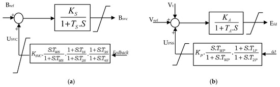Block diagram of: (a) SVC-based controller; (b) PSS-based controller.
