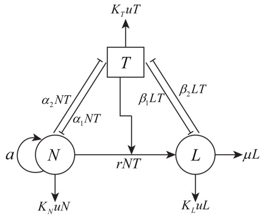 The proposed model describes the population dynamics of tumor cells and the immune system under chemotherapy, given by