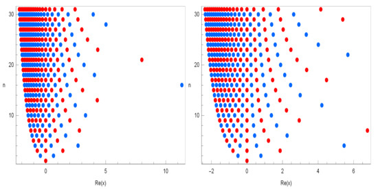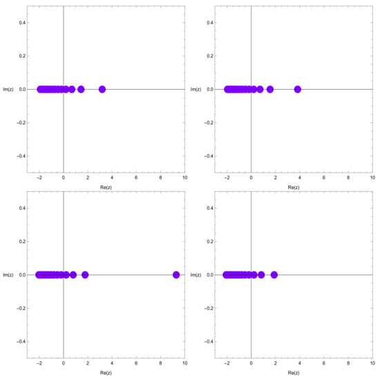 The plot of real zeros of the degenerate q-Hermite polynomials for structure are presented (Figure 4).