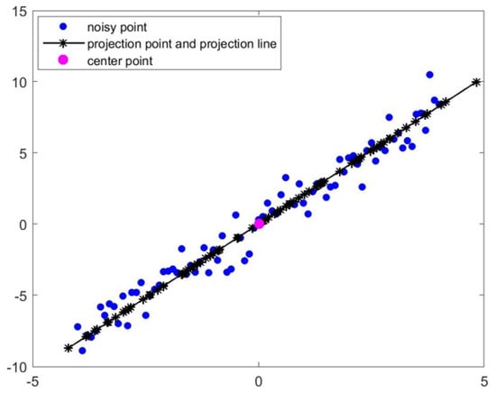 The eigenvector corresponding to the eigenvalue can minimize the distance between the projected point and . The straight line where is located at is the main straight line of the cluster, and the direction of the straight line is the principal direction, as shown in Figure 3. □
