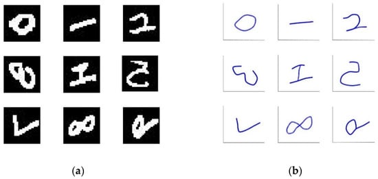 Image refinement: (a) is the initial image from MNIST digital image sets, and (b) is the image refinement by the method in this paper.