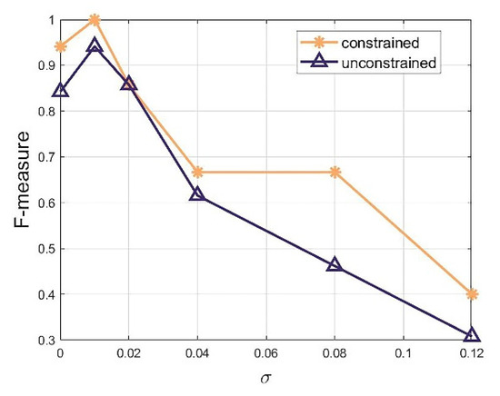 F-measure of the experimental results after constraining and without constraining.