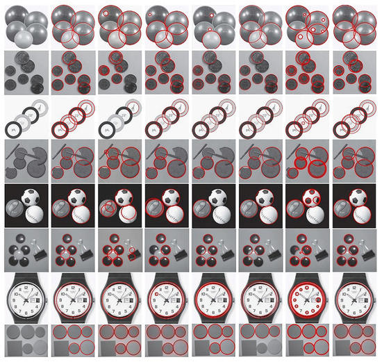 - Smith, E.H.B.; Lamiroy, B. Circle Detection Performance Evaluation Revisited, Proceedings of the International Workshop on Graphics Recognition, Sousse, Tunisia, 20–21 August 2015; Springer: Cham, Switzerland, 2015; pp. 3–18. [Google Scholar]