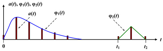 In this formula, τ is the period, with which the increments of the measured function equal to are sampled. The value n defines a point on the abscissa axis for the last value. The following condition always holds: . Let us note that most of the approximations of the function A(t) in the queuing theory are based on distributions defined in [. Moreover, for a significant part of the studied models. Typically, all such approximations lead to significant errors in the study of queuing systems.