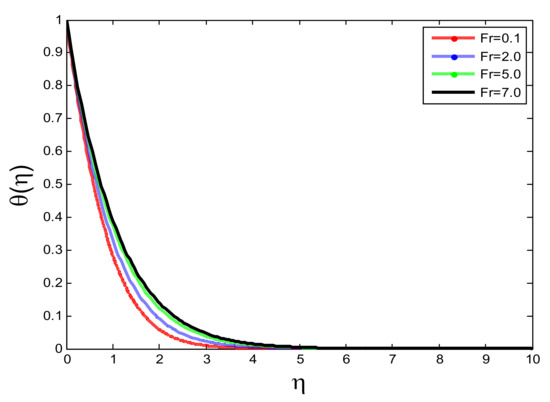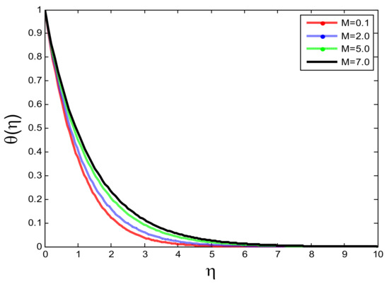 - The temperature field is increased as , and are augmented, but the reverse attitude is observed for an increase in the values of , and .
