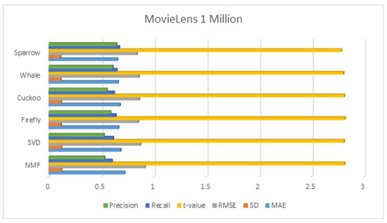 Table 6 compares the performance of the proposed algorithm with state-of-the-art algorithms on the MovieLens 1 million dataset. From the results, it is observed that the proposed algorithm gives better results than other state-of-the-art algorithms and similar swarm-based algorithms.