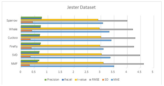 Table 7 compares the performance of the proposed algorithm with state-of-the-art algorithms for the Jester dataset. From the results, it is observed that the proposed algorithm gives better results than other state-of-the-art algorithms and similar swarm-based algorithms.