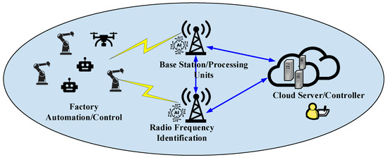 In the era of Industry , the industrial Internet of Things (IIoT) has attracted extensive attention from industrial companies and academics [1,2,3,4]. Compared to conventional wired control systems, the IIoT utilizes wireless networks to decentralize and improve efficiency during various industrial processes with massive sensors and other devices [5]. The standardization and commercialization of fifth-generation (5G) wireless networks produced various mission-critical IoT applications requiring ultrareliable and low-latency communications (URLLCs), such as autonomous driving, target tracking, and tactile Internet [6,7,8,9,10]. The third-generation partnership project (3GPP) has standardized general URLLC requirements, with reliability and about 1–10 ms latency with short packet transmission. In fact, there are several emerging URLLC applications in IIoT networks, such as time-sensitive networking (TSN), status reporting, and remote control [11,12].