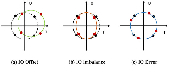 The DC component of analog IQ signals is the main source of carrier leakage. As shown in Figure 3, IQ mismatch contains offset, imbalance, and error. and represent the relative value of the respective signal amplitudes. All those impairments form partial unique fingerprint features. We can assess carrier rejection through factor