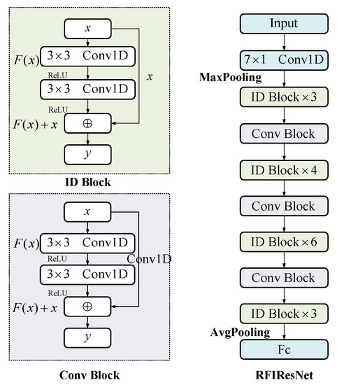 Illustration of one-dimensional RFIResNet architecture used in this paper.