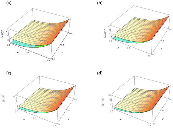 In the same way, we applied , -times, and then considered in the resultant fractional equation, then the pattern of the unknown coefficients were obtained, and hence and , in the FS expansions (5) had the general forms and , for . □