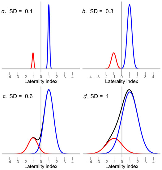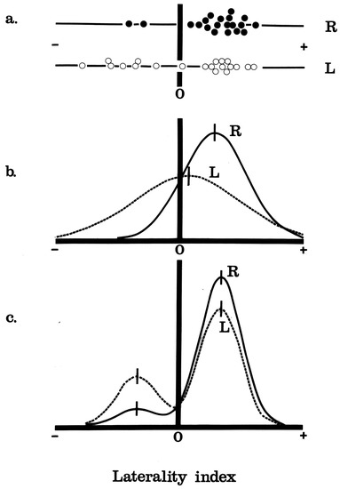 27]. The results were expressed as correlations of raw laterality indices, so the number of independent combinations is unclear, but the data are clearly multivariate and do not fit a ‘unitary theory’.