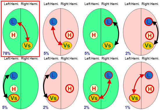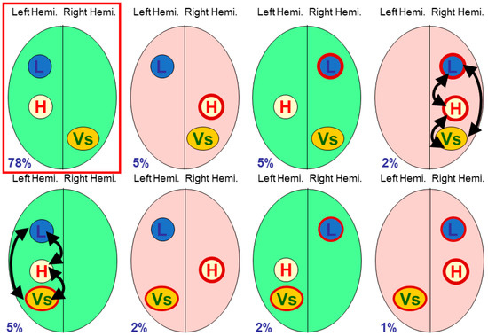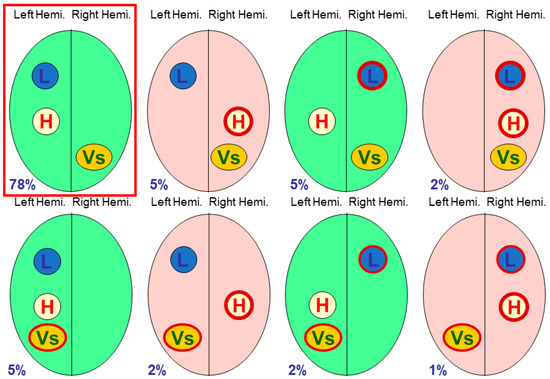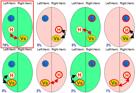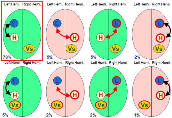 6]. Since handedness can be right or left and language dominance can be right or left, there are four lateral combinations for this cerebral polymorphism.