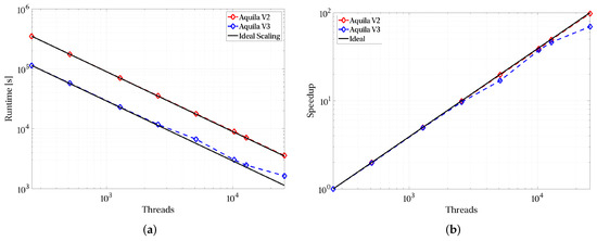 Figure 11 shows Aquila’s scaling from just ten nodes to 2400 nodes with excellent parallel efficiency (crucial to efficient resource utilization in large-scale computers). Furthermore, small cases run efficiently, even on laptops (although results for these are not presented). This is crucial for efficient use as we can post-process results where it is more appropriate rather than turning everything into a nail once the hammer is available.
