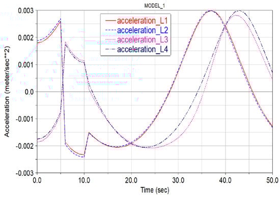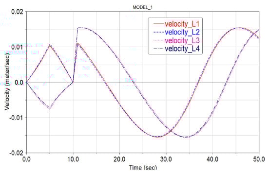 According to (66)–(68), the MATLAB numerical solution curve and Adam simulation solution curve of velocity and acceleration of the driving branches are shown in the Figure 11, Figure 12, Figure 13 and Figure 14.