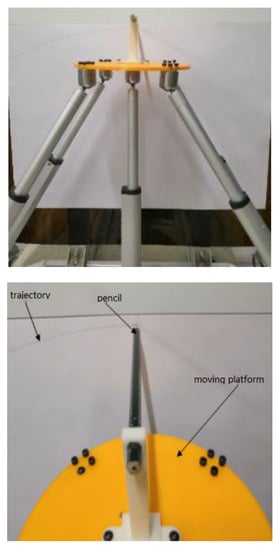 At the same time, as per the contour of the trajectory diagram, the parallel robot’s grinding system can realize accurate spatial motion, but the motion accuracy cannot be brought into full play. The analysis of the approximation errors shows that the physical model is the first prototype model. Some aspects of the dimension design and coordination are unreasonable. The fixed platform is made of aluminum. The moving platform and the universal joints were 3D printed and, therefore, the accuracy does not meet the design requirements, resulting in the low motion accuracy of the whole system.
