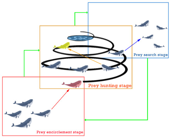 The whale optimization algorithm (WOA) is a newly proposed swarm intelligence optimization algorithm, developed in recent years. Due to its simple algorithm structure, few operators required for operation, fast convergence of iterations, and easy implementation, it has received wide attention and applications in various disciplines, such as power systems [1], data mining [2], training artificial neural networks (ANN) [3], network optimization [4] robot path planning [5], aero-engine optimization [6], and construction engineering [7]. According to existing studies, WOA has the advantage of strong global search capability, but occasionally falls into local optimality and cannot perform global searches comprehensively [8].
