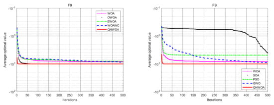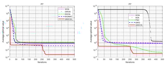 In general, the improved QNWOA in this paper has significantly improved the convergence speed, convergence accuracy, and stability compared with other algorithms.