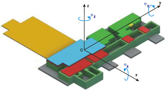 Table 1 shows the inertia characteristics of the Gamma + Laser platform with walls, floors and roofs and arranged in a matrix below. The coordinates used in the dynamic analysis of the platform modeled as a rigid body with 6 degrees of freedom (Figure 7) are: