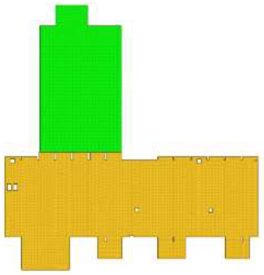 A finite element model (Figure 8 ) is made by considering the geometric and mass characteristics of the concrete slab [19,20,21], as presented in Section 2 [22,23,24,25,26,27,28,29,30,31].