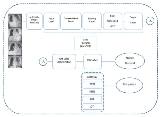 Considering the literature, the purpose of our study is to evaluate the diagnostic performance of a CNN-based ALO system including various classification methods (Softmax, Support Vector Machines (SVM), K-Nearest Neighbors (KNN), Naïve Bayes (NB), Decision Tree (DT) using X-ray images (the early-stage radiological imaging before CT imaging needs) to detect COVID-19. Our motivation to compare various classification methods is to find the classification algorithm that provides better results and combine its strength in classification with CNN features in the deep learning steps []. Our results reported in this work show that this approach can be used for applying deep learning techniques to extract high-level features from X-ray images for COVID-19 diagnosis. To the best of our knowledge, this will be the first study on the optimized classification process of COVID-19 and healthy instances from the chest X-ray images and will enlighten the new studies on AI-based diagnosis systems. In this study, Naïve Bayes classifier and Ant Lion Optimization Algorithm (ALO) are combined with CNN, an approach not utilized before, which presented remarkable results. This work brings a new optimized deep learning application of COVID-19 recognition, which is validated with two datasets, compared with the related studies in the literature and showed remarkable results.