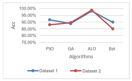 In the second stage, ALO was applied as the feature selection method to reduce the size of the features, which are considered as the output of the fully connected layers. The feature selection function maximizes the classification accuracy and reduces the size of the features to a minimum. Then we formulate the feature selection problem as the objective function presented in Equation (22):