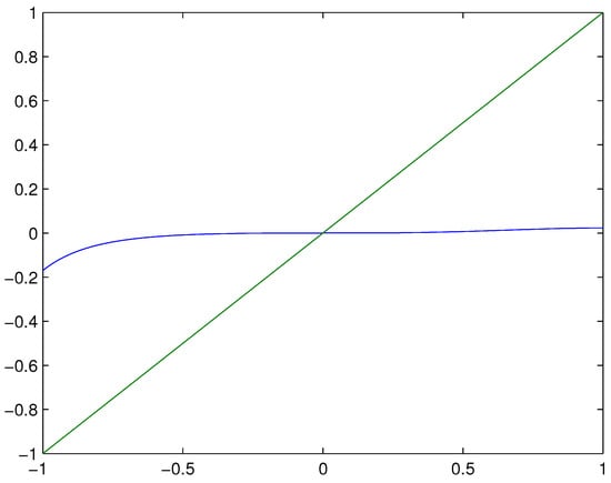 Hence, all the conditions of Theorem 1 are satisfied which implies that f has a fixed point, that is, the integral Equation (27) has a solution. □
