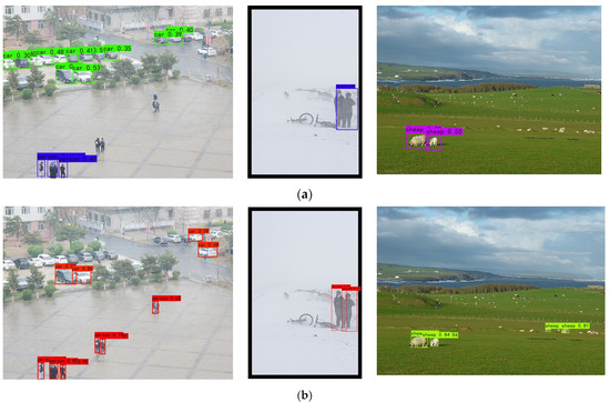 Figure 10 shows the detection results when the illumination variation in the image has a great influence on the detection results. Compared with the previous experiments on ResNet, some objects can be detected using the Swish function, but the confidence level is low. Our proposed EANAF can obtain a better detection accuracy with a higher confidence level. Figure 11 shows the detection of small objects in the complex background. We can clearly see that the objects detected by the proposed EANAF are more comprehensive.