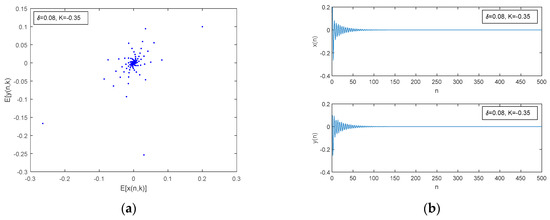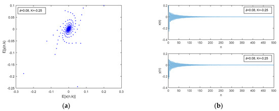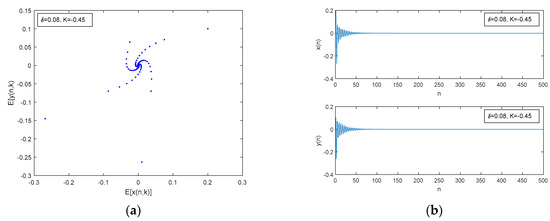In 1976, May studied simple mathematical models with very complicated dynamics and had a paper published in Nature [10], which established that many ecosystems were remarkable complexity in dynamics. The Wang et al. analysis of dynamic and bifurcation in an ecosystem is investigated in reference [11]. Reference [12] studied stochastically globally exponential stability for stochastic impulsive differential systems. In reference [13], the control of a hyperchaotic discrete system is investigated. Tie and Lin are studied controllability of two-dimensional discrete-time bilinear systems [14]. Reference [15] studies the stability of two-dimensional discrete systems. Ooba studied asymptotic stability of two-dimensional discrete systems with saturation nonlinearities [16]. Jia et al. investigate the stochastic dynamics of a prey–predator type ecosystem driven by Poisson white noise excitation [17]. Wan studied an iterative learning control of two-dimensional discrete systems in the general model [18]. Wang et al. studied dynamic analysis of the coupled logistic map [19]. Reference [20] studied the logistic mapping bifurcation control. Wang et al. studied chaos control of two dimensional logistic mapping in references [21]. The dynamical behavior of discrete systems and their control are studied in references [22,23,24]. In the ecosystem, because these stochastic factors cannot be ignored, various stochastic ecosystems will be considered. In the real world, the stochastic factors determine the changing trends of ecosystems, and delays exist in ecosystems. Thus, it is very necessary to research the dynamical behavior in lagged discrete ecosystems with random parameters. In recent years, Xu et al. have studied the dynamic behavior and dynamic control problems of systems with random parameters. For instance, bifurcation, chaos and so on [25,26,27,28]. In particular, Ma et al. is investigated stochastic Hopf bifurcation behavior of a stochastic lagged logistic system [29].