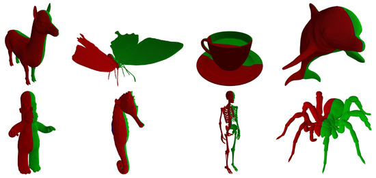 - Podolak, J.; Shilane, P.; Golovinsky, A.; Rusinkiewiczm, S.; Funkhouser, T. A Planar-Reflective Symmetry Transform for 3D Shapes. ACM Trans. Graph. 2006, 25, 549–559. [Google Scholar] [CrossRef]