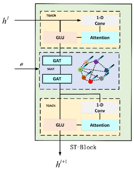 After two ST-Block processing, the output layer of the model is composed of time gated attention convolution network layer (TGACN) and fully connected networks layer (FCN), as shown in