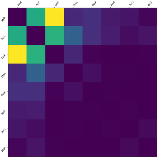 in the adjacency matrix is calculated as shown in the Equation (2).