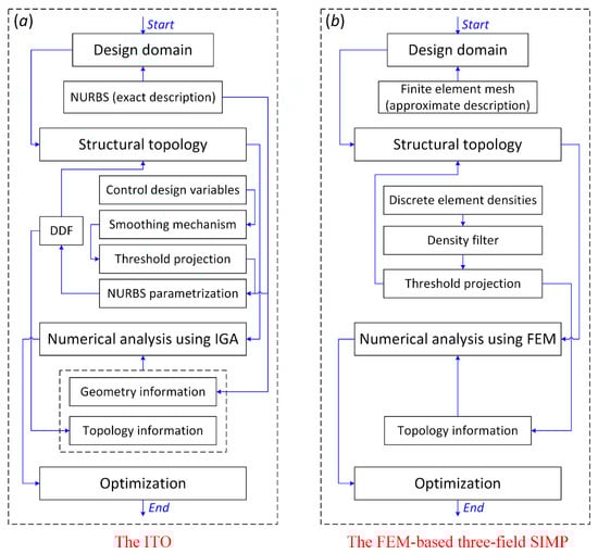 Flowcharts of (a) the ITO and (b) the FEM-based three-field SIMP.