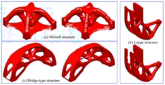 - Matsui, K.; Terada, K. Continuous Approximation of Material Distribution for Topology Optimization. Int. J. Numer. Methods Eng. 2004, 59, 1925–1944. [Google Scholar] [CrossRef]
