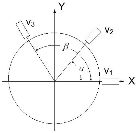 where: k is the index number, k = 1, 2, 3, …, N; v(k) is the combined signal sequence of the three probes; s(k) is the roundness error sequence contained in v1(k); s(k + m1) and s(k + m2) are the roundness error sequences contained in probe 2 and probe 3; and m1 and m2 correspond to angle α and β, which can be calculated as:
