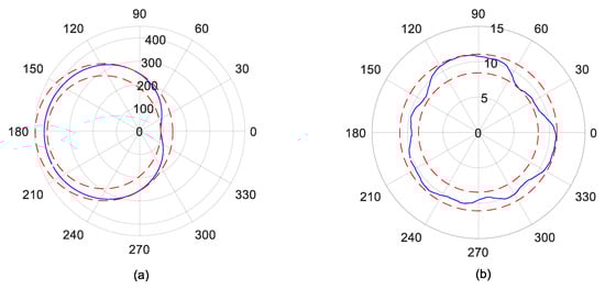 By comparing Experiments 1 and 3, the effect of consistency of sampling points on the polar plots of the frequency-domain solutions is shown in Figure 7. The number of revolutions remained at 50. The target harmonic order was set as 10. The polar plots of roundness and spindle error presented similarly.