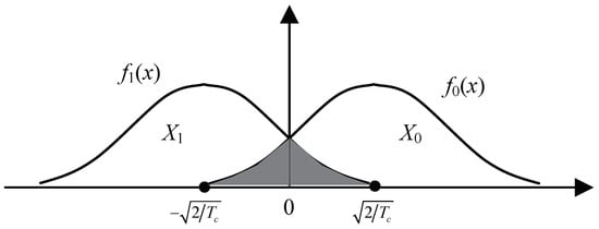 Figure 2 depicts the two conditional probability density functions (PDF) and for the transmitted bits 0 and 1 with mean values of and , respectively.