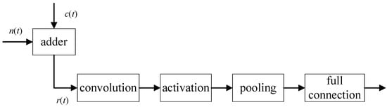 In Figure 3, the proposed architecture takes the received signal as input and then applies one-dimensional (1D) convolution to extract features. Afterwards, the signal flows to the activation module to become unlinear. The flow continues to input a pooling component, followed by a full connection to act as a classifier on the features.