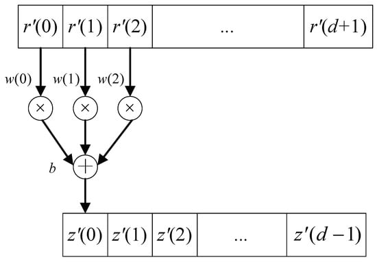 where is the j-th element of the output, the z is also referred as extracted feature, and b is called bias which represents the baseline when all the inputs have values of zero. Note that the length of is . In order to make to have the same size as the input r, we add one zero to the first and last positions of r, respectively, which produces a new input vector = [ 0 r 0]. Thus, we can rewrite Equation (8) as