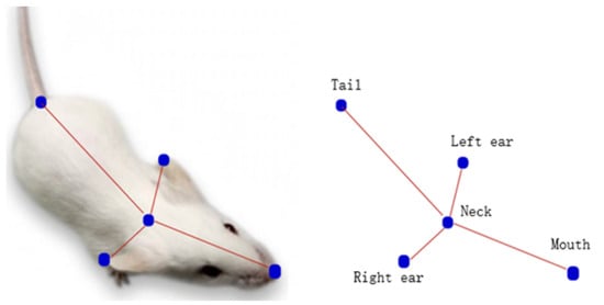 Table 1 lists the ID of each point and its semantic correspondence. In Figure 2, five different points are marked on one mouse with their corresponding X and Y coordinates. As the analysis above, we set up five keypoints based on experience [37]: mouth, left ear, right ear, neck, and tail root.