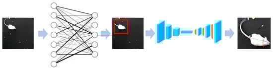 First, our detection device utilizes a Logitech C270 camera to record video segments of mice and arranges the video into a series of RGB images at a constant 30 frames per second rate. In the second part, all eligible data are transported through the trained network YOLOv4 [46], which is applied to determine the locations of mice that appeared in the scene. The YOLOv4 network structure is shown in Figure 5.