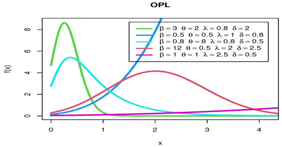 Figure 3 shows various pdf curves for OPL models with different parameter values.